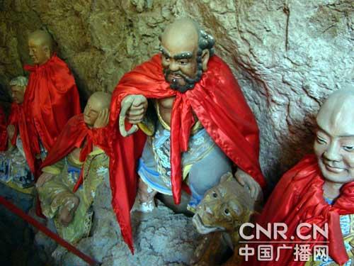 曲径通幽的小路旁有一护法殿,内供胡三太爷和胡三太奶,这是保家仙中最高的神位,在此处供奉道教是验应佛主生前所讲的六道众生皆有佛性,经过修行才能得到正果。