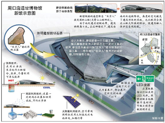 本报讯(记者饶沛)记者上午从周口店遗址博物馆获悉,周口店遗址博物馆新馆已确定采用北京市建筑设计研究院提出的“石器”造型方案,并将于明天举行开工奠基仪式。