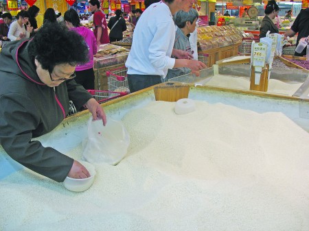 王贵芝开米店已经有两年了,“白点越多的大米越不好,吃起来口感不如没有白点的大米。”她说大米白点和产地没有关系,应该和品种有关系,也与稻子成熟的季节有关,夏季产的大米相对来说白点多。