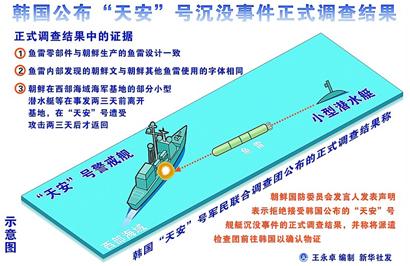 联合调查团20日公布正式调查报告,认定“天安”号遭炸药当量200至300千克的朝鲜鱼雷攻击。