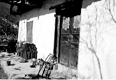 2008年11月18日,周正龙的老房子门上贴着“喜”字,那是女儿出嫁时留下的。