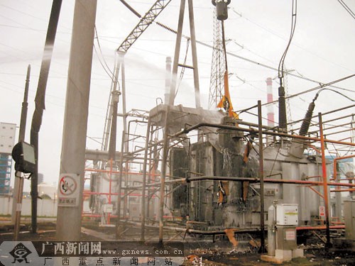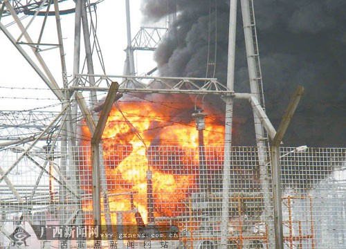 来宾一变电站爆炸起火 疑为变压器发生故障(组图)