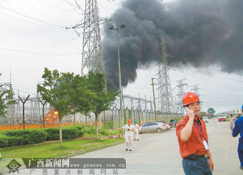 事发地点在来宾电厂B厂附近的一个500千伏超高压变电站。据一位目击者称,当天下午5时30分左右,突然传来一声巨响,随后便看到远处的超高压变电站上空传来滚滚浓烟,熊熊燃烧的火苗迅速蹿起,顷刻将变电器上方密如蜘蛛网的部分电线吞噬。
