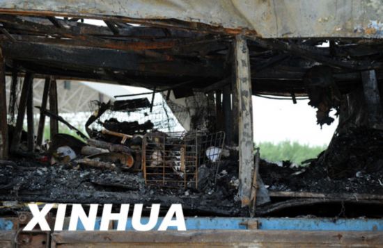 长深高速事故车烧剩空壳 道路开通车行缓慢(图)