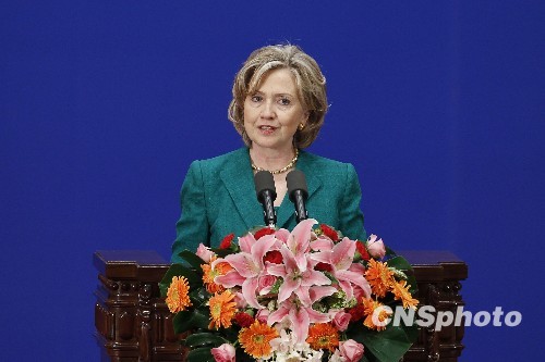5月24日,第二轮中美战略与经济对话在北京开幕,美国总统奥巴马的特别代表、国务卿希拉里·克林顿出席开幕式并讲话。中新社发盛佳鹏 摄