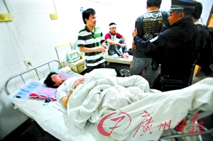 在靠近过道的一间病房内,容纳着3名伤者,其中一人伤势很轻,站在床边休息,另两人躺在床上,精神不振,绷带缠身。轻伤者名叫廖江波,他说躺在面前的是同行的朋友,两人乘坐列车去往桂林,在第5节车厢。他庆幸自己摔落的位置不高,没有被硬物压住,因此基本无恙,而他的朋友却面部红肿,双眼充血,双颊尚有风干的血迹。