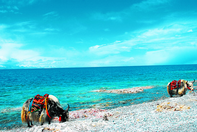 西藏的美,在水。西藏江河奔涌,湖泊众多。著名的河流有金沙江、怒江、澜沧江、雅鲁藏布江等。西藏素有“亚洲水塔”之称,亚洲著名的恒河、印度河、湄公河等河流的源头都在这里。同时,大大小小共1500多个高原湖泊堪称西藏的明珠。西藏三大神湖纳木措、羊卓雍措、玛旁雍措久负盛名。纳木措依偎在念青唐古拉雪山北麓,藏语意为天湖,海面海拔4718米,总面积1940多平方公里,是世界上海拔最高的咸水湖。站在湖边,只见碧蓝的湖水与天相接,周围绿草如茵,远处雪山连绵,近处游人如织,五彩的经幡飘动,让人不能不沉醉其中。