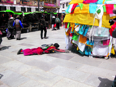 大昭寺前磕长头的藏族青年令人震撼。