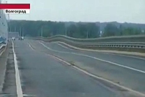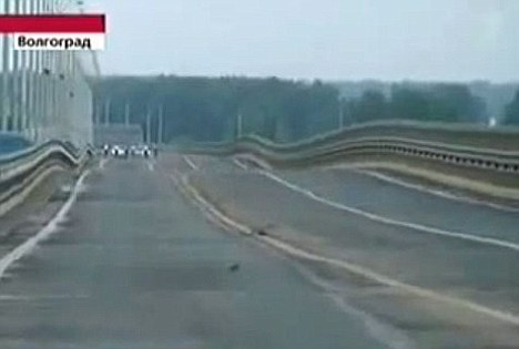 俄罗斯伏尔加格勒的伏尔加河大桥晃动如波浪,上下幅度可达一米。