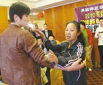 从事武术行业的女教练孙畅荣还现场和同行刘元亮演示遇到歹徒袭击时,如何迅速脱身的一招。孙畅荣建议广大女性遇到危险时一定不要过于心慌着急,因为体力上的劣势,不要和歹徒纠缠太久,争取一招制敌,然后马上离开现场和求救。