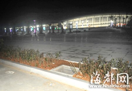 记者在福清火车站广场看到,这里几乎是漆黑一片,除了站内透出的光线外,广场上的光源基本就是杂货摊上的照明和摩的和出租车的车灯照明。尽管这样,但广场上的垃圾却随处可见,路面上坑坑洼洼,广场旁边的几个窨井,根本没有窨井盖,里面堆了不少垃圾等杂物。广场附近还有一个工地,没有安装任何防护网。有不愿透露姓名的在场者说,下雨还好,如果是晴天,一旦风起,沙石吹向火车站广场内,附近空气沙尘满天。而据记者了解,广场附近正在修一条路,通往附近的一个村落。