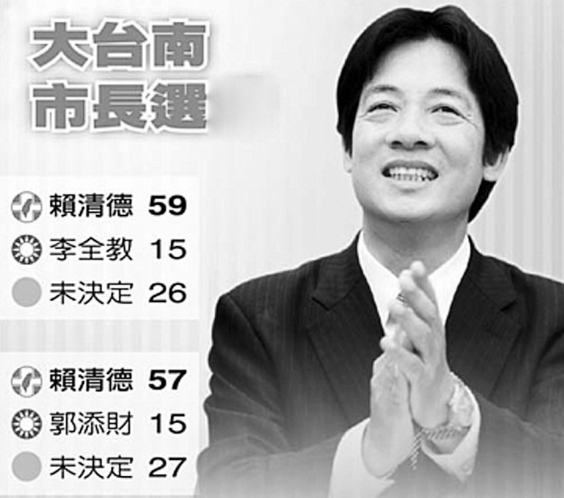 郭添财乃“正港”的台南子弟,赖清德则是台北县人士。但按目前的形势,郭添财想击败这个“外乡人”还真有不小难度。