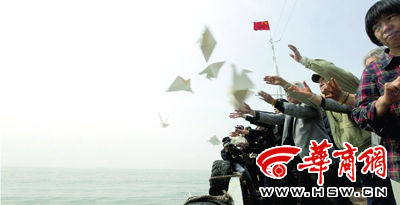 放飞千纸鹤,寄托对亲人的怀念与哀思 本版图片由朱丹阳 摄