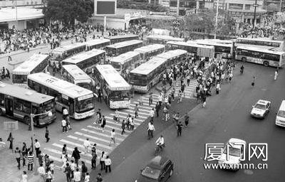 本报讯(文/图 记者 王绍亮)动车开通后,厦门火车站交通拥堵状况立刻显现出来,尤其是北广场仅能供公交车始发或停靠,社会车辆是“一位”难求。