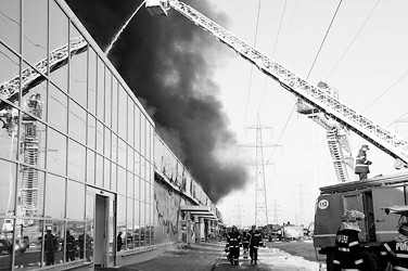 布加勒斯特东北郊的红龙中国商品市场26日早晨失火,两个大型商厦已基本烧毁,一名当地消防员在灭火中不幸牺牲,4名消防员受伤。红龙市场是罗马尼亚,乃至整个东南欧地区规模最大的中国商品集散地,在罗居留的约7000名华商绝大多数在那里经营。当天着火的是市场的第5号和第6号商厦,涉及商铺约2000个。新华社发
