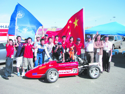 湖南大学FSAE赛车队是中国首支大学生FSAE赛车队,图为2007队员们在美国比赛时合影。张晏齐摄