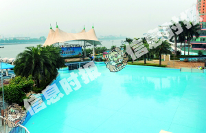 珠江泳场门里门外,都有不少工人忙碌地进行着装修工作。泳场门口处的喜讯写着:该泳场将在6月1日开放,落款处是“黄金海岸水上乐园”。泳场内,主体泳池已被装修一新,十多名装修工人正在进行场地清理等工作。二楼的泳池里,池水已注满,吸引了部分泳客到此游泳。据场内负责人称,目前,泳场主体部分已装修完毕,虽然可以确保在6月1日准时开放,但由于时间仓促,且前段时间经常下大雨影响了工程进度,原定的新增娱乐项目很有可能没法开放了。如果天气允许的话,泳场将一直开放到今年10月份。