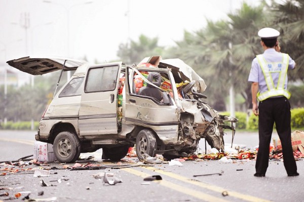 现场:微型车撞得快散架
