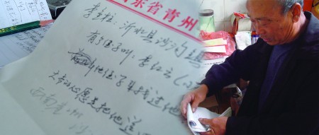 沂水、沙沟、崖庄,贾村忠粗粗地理出一个地址:“沂水县沙沟镇崖庄村” ,“我一打电话,沂水县民政局说有这么个地方,可把我高兴坏了。”