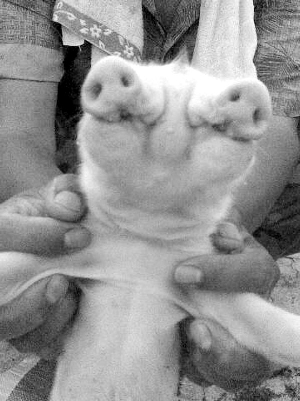 母猪产下怪猪崽 双鼻双嘴三只眼