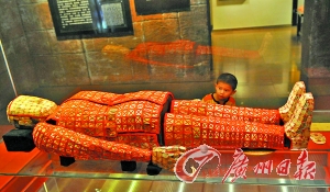 “赵眜身上的丝缕玉衣,除头套和手套外,身上和四肢用的玉片有加工过痕迹,可以作为当年南越国已有自己玉器制作工场的物证。”