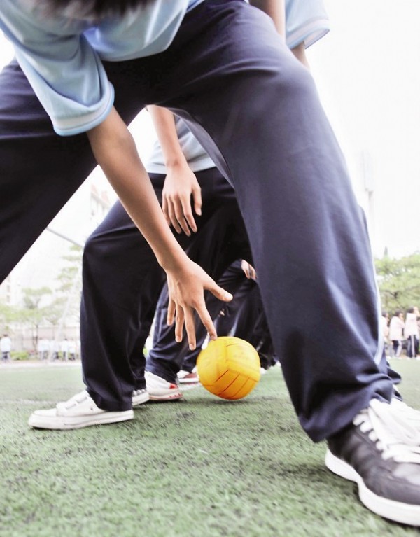 比如“篮球滚滚滚”这一游戏主要是团队作战。二十多个同学站成一列,两腿分立,由第一位同学将篮球从胯下滚至最后,最后一位同学接到球后抱球跑到队伍的最前面,继续开始滚球。