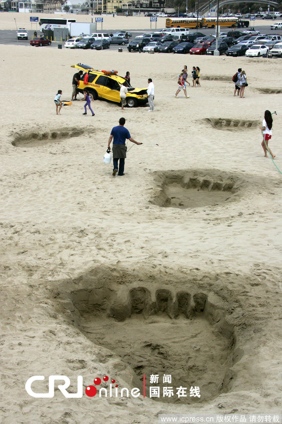 加州圣摩尼卡惊现"金刚"脚印 汽车被踩瘪(高清组图)
