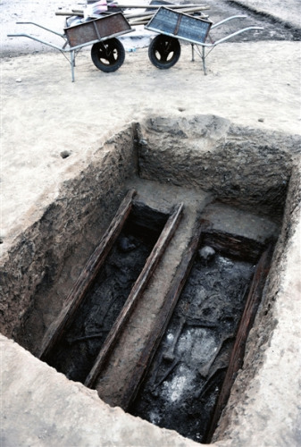 被发掘的墓葬内,墓主人的遗骸清晰可见。