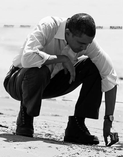 5月28日,美国总统奥巴马在路易斯安那州海边视察墨西哥湾漏油事故现场