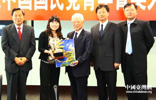 “中国国民党青年菁英大陆参访团”向民革中央赠送纪念品(中国台湾网 孙金诚 摄)