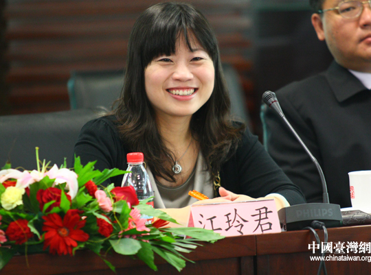 “中国国民党青年菁英大陆参访团”团长江玲君发言(中国台湾网 孙金诚 摄)