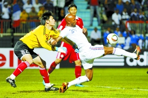 世界杯热身赛中国男足1∶0击败法国 国足斗“鸡” 这回还行