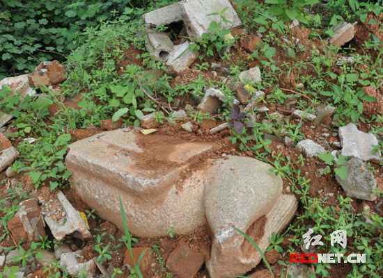 关于刘琨墓牌坊被毁的细节,刘娭毑说是发生在1966年“文革”时期。牌坊中的石羊、石马以及置于墓庐堂屋中间的石乌龟等神道石刻都被破坏,被附近村民拿去修堤坝了。