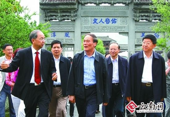 6月7日,中共中央政治局委员、国务院副总理王岐山在腾冲和顺古镇考察。[记者 刘建华 摄]