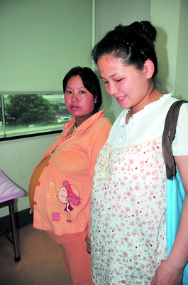 和同样怀孕7个月的另一位孕妇相比,刘小贞(左)的肚子明显大得多。余杨 摄