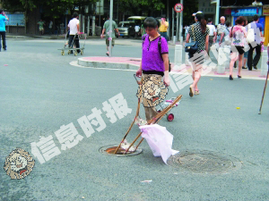 市民何先生:在康王南路与杉木栏路交界路口,有一个沙井盖已经丢了几天没人理,无盖沙井位于人行道中间,晚上对过往路人有危险。