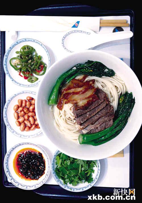 这碗汤面的热汤更有讲究。牛骨用230℃的火烤1小时后,用大火焖半小时,再用小火焖8小时。汤和面送上飞机后要分别加热,最后才合在一起端上旅客的餐桌。