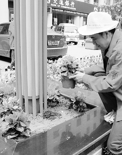 兰州街头万盆鲜花遭贼手
