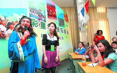 在长沙期间,来自异国他乡的孩子们深入砂子塘小学课堂,与长沙的同龄人一起学习书画感受墨韵书香,弹奏古筝扬琴等民族乐器,学剪纸、打腰鼓。在古诗词赏析课上,金发碧眼的美国小学生Rachel Isis穿上长袍,戴上羽冠,装扮成“诗仙”李白的模样,用不流畅的中文一字一顿地吟诵着“床前明月光”。美国小学生还入住结对长沙小学生的家中,与长沙“爸爸”“妈妈”和兄弟姐妹们,一起逛火宫殿吃臭豆腐,上岳麓山喝白鹤泉水,到省博物馆参观马王堆汉墓出土文物,了解汉代服饰的深远影响。看着孩子们积极参与的热情,ALL学校负责人说,神秘而神奇的东方文化,让孩子们非常向往,此次长沙之行,许多孩子是第一次接触中国书画、诗词,但通过这种学习,他们认识了长沙,了解了中国文化。