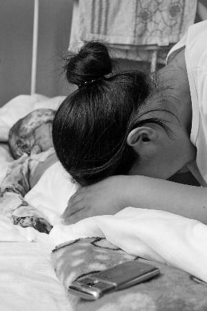 妈妈伏在小莹莹身上轻声叹息。本报记者 吴凡摄
