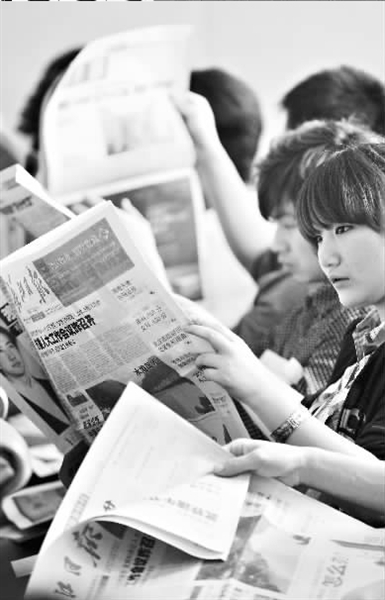 活动现场,大学生阅读《长江日报》。