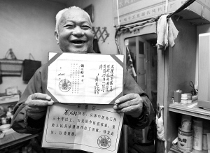 刘师傅,上海周浦人。16岁进上海佛慈大药厂当学徒,23岁到兰州,做到60岁,厂里不让他退,再聘5年,65岁退休。刘师傅是佛慈德高望重的“老药工”。这“老药工”称谓不是随便叫叫的,是国家中药局授予的荣誉,有“红派司”的,全国没有几个。陪同我采访的厂里领导说,刘师傅是佛慈绝对的技术权威,厂里上上下下只要碰到技术问题,都叫刘师傅来会诊。“有请刘师傅”成了厂里职工最常说的一句话。