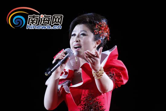 南海网6月16日消息(南海网记者赵仕芳)在第九届国际老人文化博览暨中国海南第八届盈滨龙水节的“长寿澄迈狂欢盈滨”开幕晚会上,身着一袭红裙的她以一曲《龙腾海南》唱响开幕晚会,后又三度登场激情演绎《呼伦贝尔大草原》和成名曲《五星红旗》及《国家》,为晚会画上圆满句号,其清亮圆润的嗓音和大气磅礴的舞台魅力让现场观众记忆深刻。