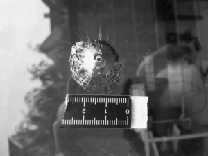 本报讯 (见习记者 左妍)一夜之间,家中两扇窗户竟然开裂,仔细查看,玻璃上有几个清晰的弹孔。昨天下午,家住松江区丽水华庭别墅的赵先生惊恐地发现自家窗户遭“枪击”,警方调查后初步断定,弹孔系钢珠枪枪击所致。