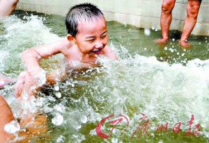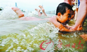 端午节当天,不少大人带着孩子到广州海印公园的亲水平台浸“龙舟水”。每年“龙舟水”来时,人们就会带着家人到江边泡脚戏水,按照传统的说法,“龙舟水”有辟邪的作用。