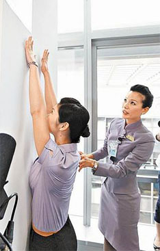 华航取消身高限制,改采考生举手须触及机舱行李柜高度作为审查标准。来源:台湾《苹果日报》
