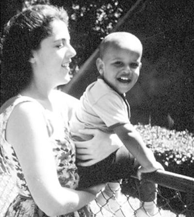 斯坦丽和年幼的儿子奥巴马合影