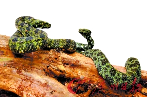继2007年在韶关发现广东第一条雄性“蛇中熊猫”——莽山烙铁头蛇后,韶关市林业部门日前又再次发现一条雌性的莽山烙铁头蛇。这两次重大发现打破了此前许多学者认为此种中国独有蛇类只在湖南莽山出没的惯有认识,增加了广东省分布该种珍稀蛇类的新记录。目前,专家们正在对这一对珍稀的“小青龙”进行人工驯养实验,下一步将对它们进行广东第一次莽山烙铁头蛇的人工繁殖研究。