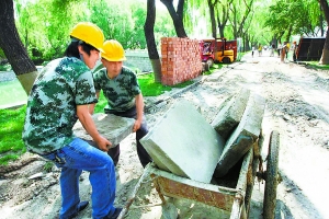 本报讯(记者贾晓燕)昨天,颐和园西堤附近的环湖路开始施工。年底之前,现有的3公里水泥方砖将消失,由传统建筑材料—花岗岩和青砖所替代。