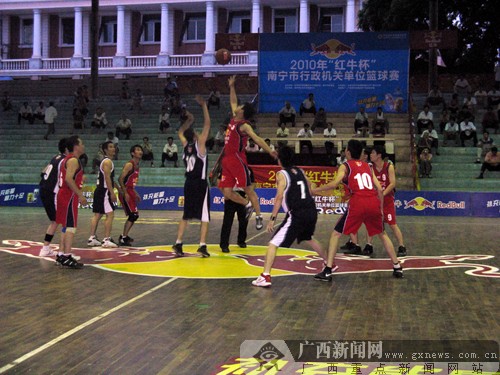 广西新闻网南宁6月21日讯(记者覃雄 实习生陈敏 刘婷)6月20日晚七点半,“红牛杯”南宁市行政机关单位篮球赛县、城区组的决赛阶段比赛在武鸣县球场打响。其中一场比赛,兴宁区队以63:51击败西乡塘区队,最终获得第四名。